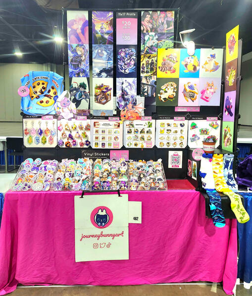 I graduated from University of Texas with an Aerospace Engineering degree and have since spent the last 8 years traveling across the United States as a freelance artist selling her work at anime and pop culture conventions. I've worked with education and beautification programs around Houston, painting murals and visiting and educating local middle and elementary school students. I've contributed to art exibits such as the House of Cards exhibit by Weingarten Art Group in 2020. I've worked as a graphics designer for organizations such as Dreamhack, with whom I created the enamel pin design for the 2023 Dreamhack Atlanta convention, and am working with them to create official pins for their next 5 conventions across the world.